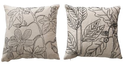 Pillow with Botanical Embroidery