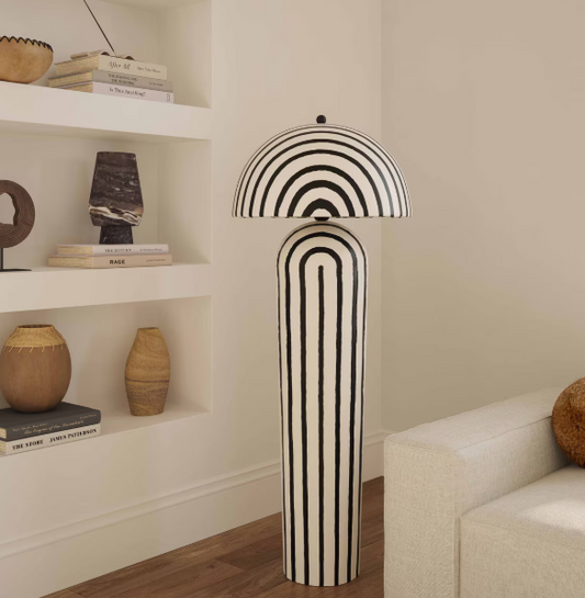 Black Striped Papier Mache Floor Lamp