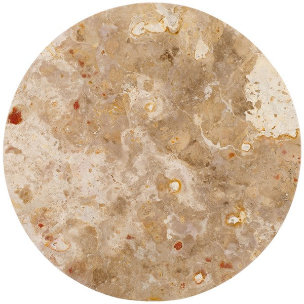 Elevate your home with the sculptural beauty of Valentina tall round accent table. The round profile of the table is juxtaposed against the solidarity and hardiness of marble. Crafted entirely in real beige marble, the table stands upon a refined and sculptural pedestal.