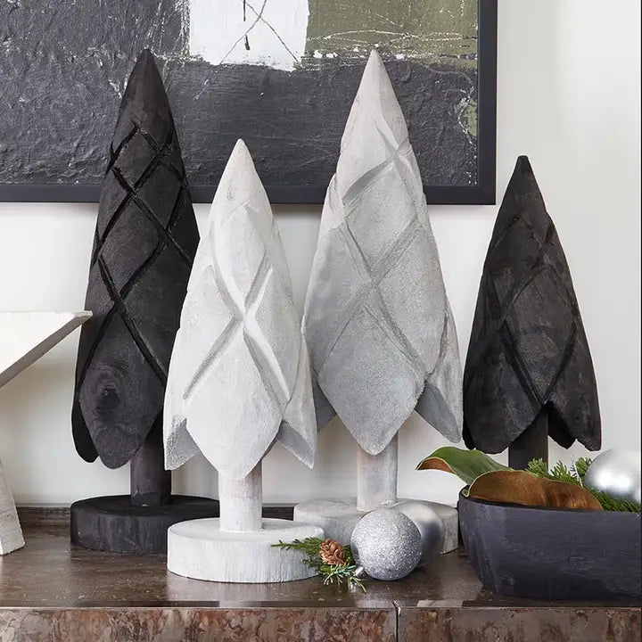 Add a touch of modern coastal to your Holiday decor with this set of White Paulownia wood trees!